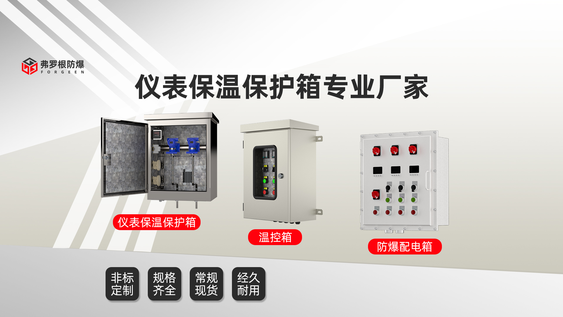 江蘇弗羅根防爆科技有限公司是致力于熱控、鈑金技術和自動化控制系統的研發、銷售及工程施工的綜合性企業。公司自成立以來,始終堅持以“客戶至上,品質質量,以人為本,精益求精”的企業宗旨。以經營高端的產品,優良的品質為經營原則,不斷創新,共同提高,立足市場,面向世界,我們相信以科學的管理,先進的設備和有力的技術保障,必將為客戶提供高質量的產品和完善的服務。